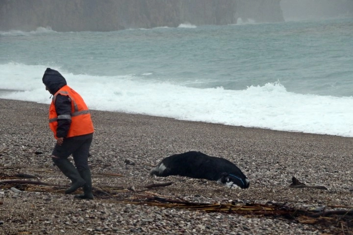 Dev dalgaların oluştuğu dünyaca ünlü Konyaaltı Sahili’nde ise kıyıya telef olmuş dana vurdu. Sabah erken saatlerde vurduğu değerlendirilen dana için belediye ekiplerine bilgi verildi.
