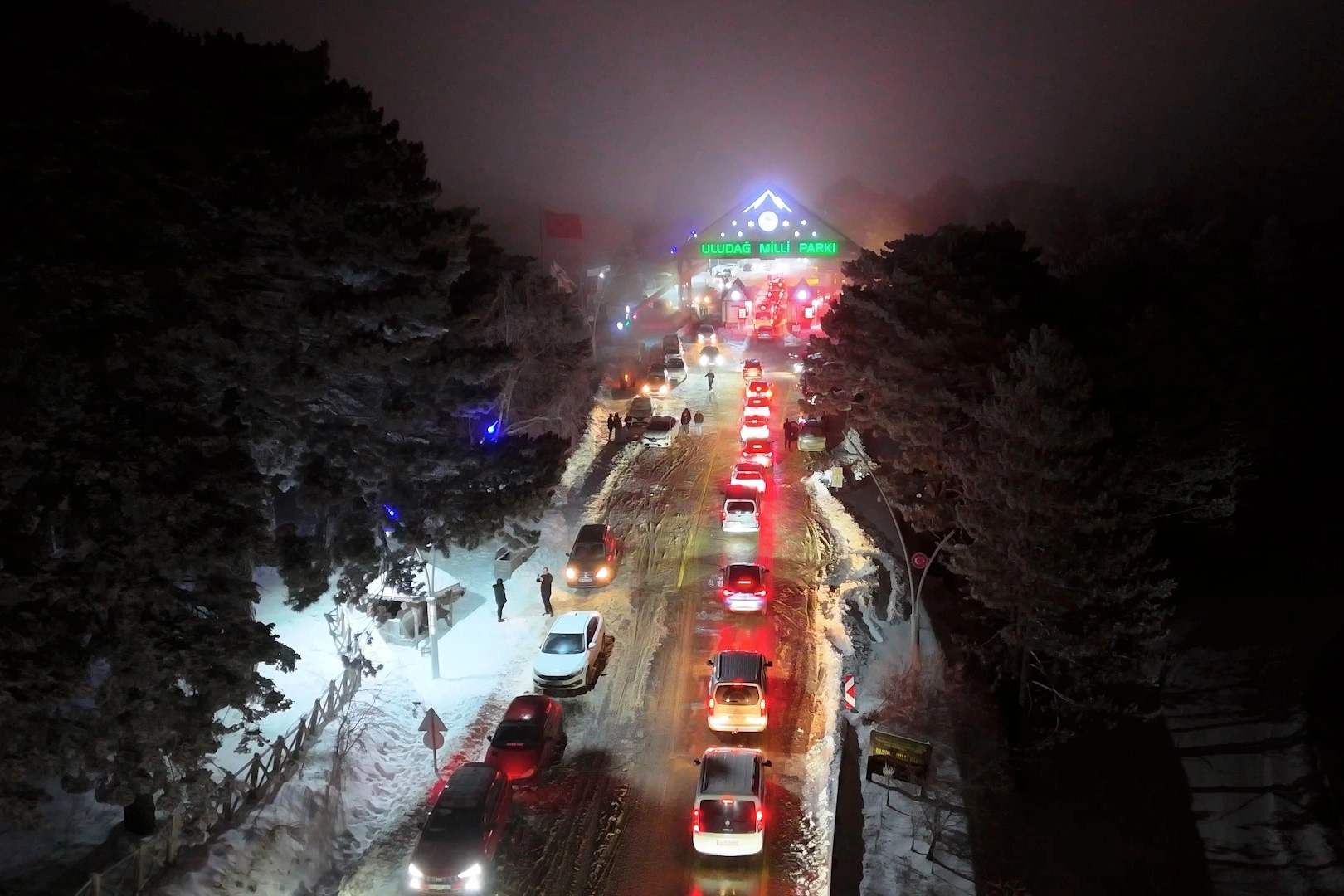 Uludağ’da kar yağışıyla birlikte yılbaşı hareketliliği başladı. Kar yağdı, Uludağ’a akın başladı; Milli Park gişelerinden her 10 saniyede bir araç geçti.