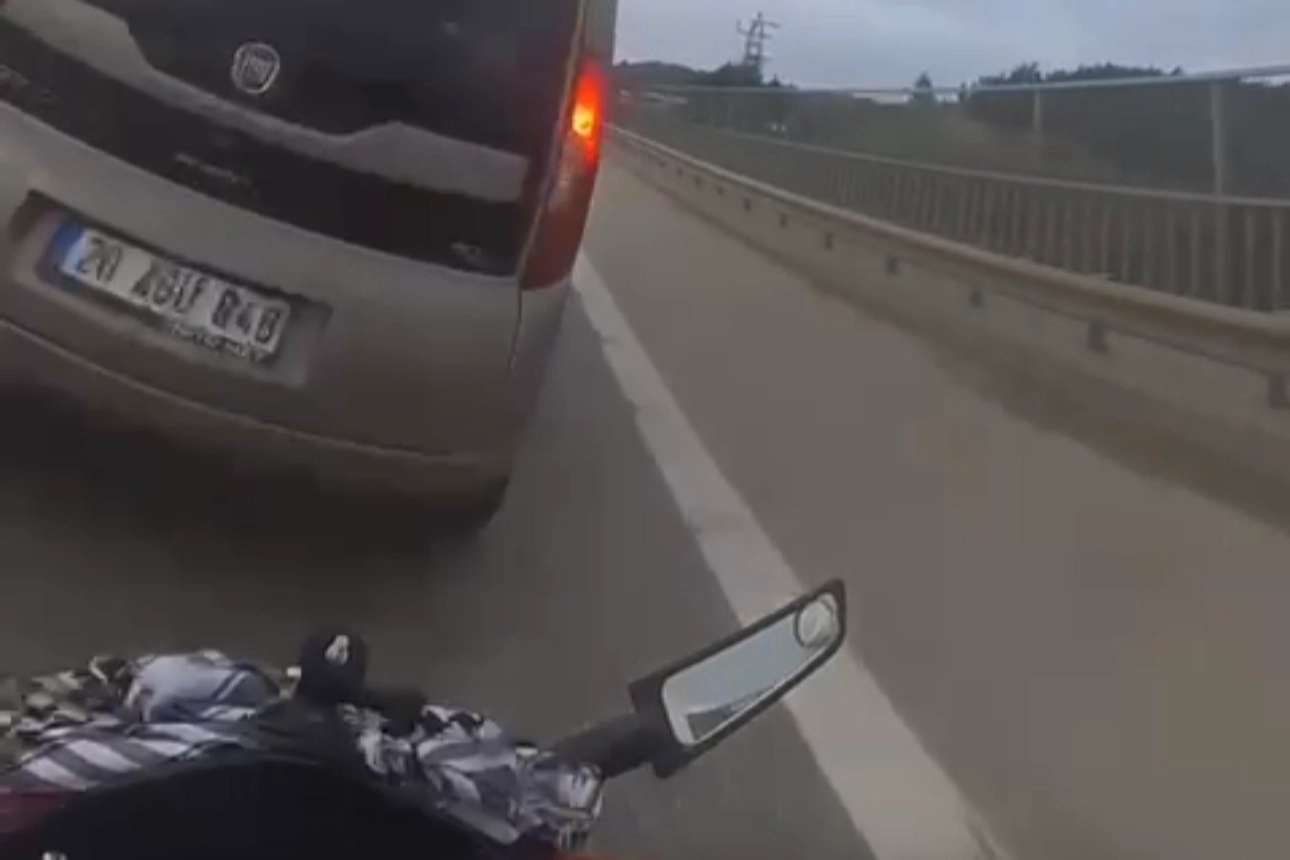 Kaza, merkez Osmangazi ilçesi Bursa-Yalova Otoyolu'nda meydana geldi. Saatte 113 kilometre hızla giden motosiklet, önünde duran hafif ticari araca çarptı. Kazada motosiklet sürücüsü, başını çarparak kırdığı aracın arka camından içeriye girdi. Belden yukarısı araç içinde kalan sürücünün kolları kırılırken, kaza kask kamerasına yansıdı.