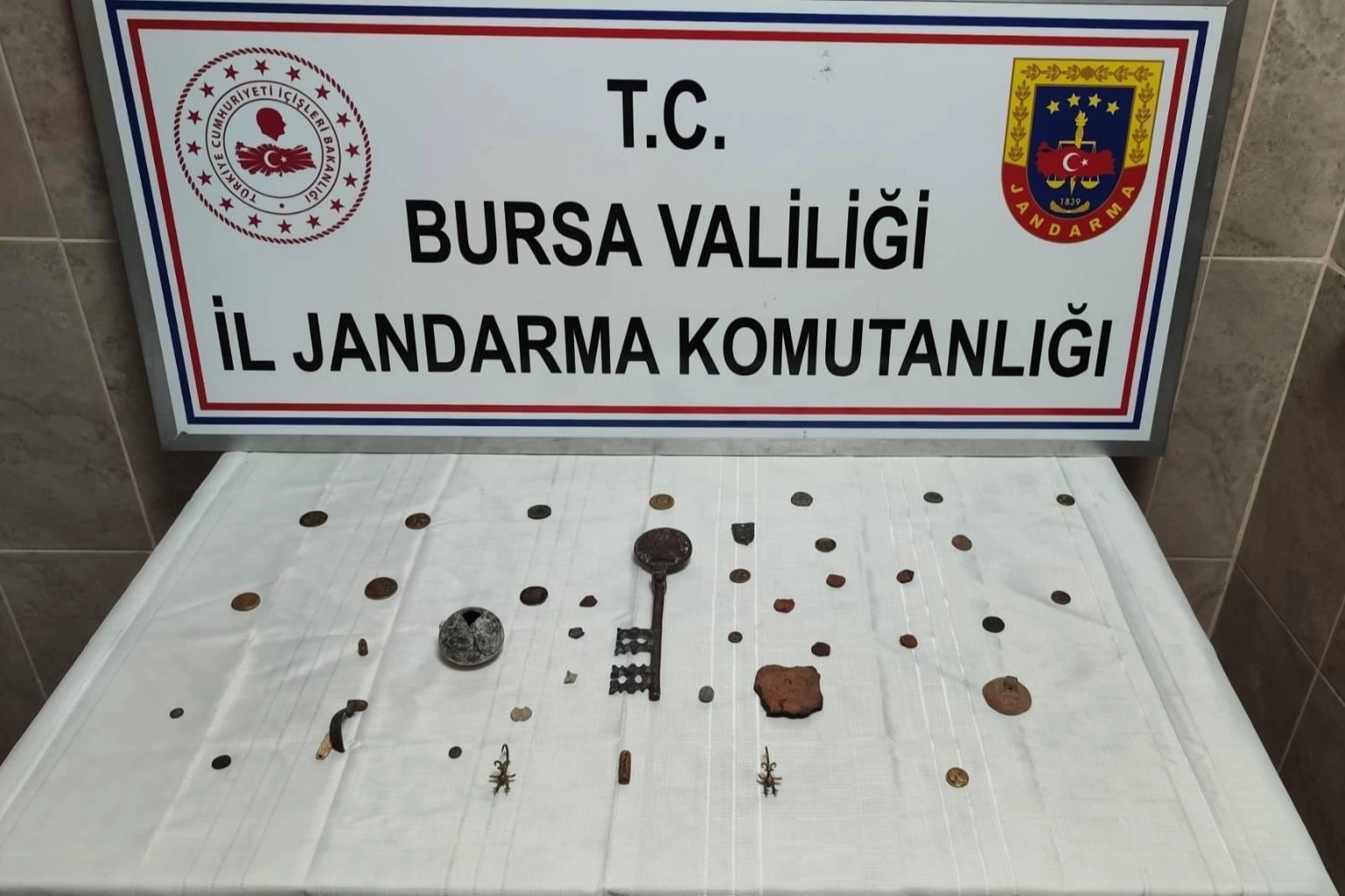 Nilüfer ilçesi Başköy Mahallesi’nde bir şahsın elindeki tarihi eserleri satmak istediği yönünde bilgi alınması üzerine, İl Jandarma Komutanlığı timlerince "Anadolu Mirası Operasyonları" kapsamında operasyon düzenlendi. Gerçekleştirilen operasyonda, Bizans ve Roma İmparatorluğu dönemlerine ait olduğu değerlendirilen 42 adet tarihi eser niteliğinde sikke ve çeşitli obje ele geçirildi. Olayla ilgili olarak şüpheli şahıs hakkında adli işlemlerin başlatıldı.