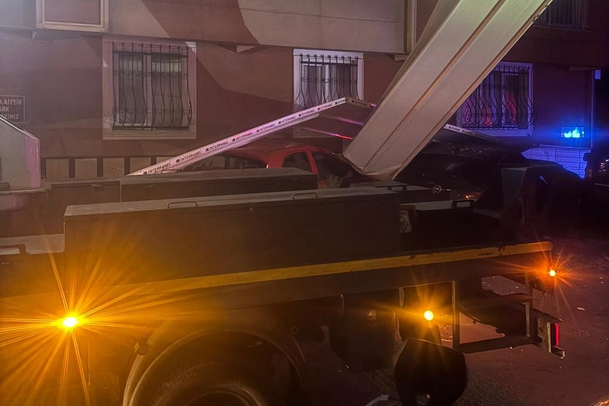 Büyük bir gürültüyle bir apartmanın çatısında bulunan paneller araçların üzerine düştü. 3 aracın zarar gördüğü olayda tellere takılan diğer paneller itfaiye ekipleri tarafından kurtarıldı.