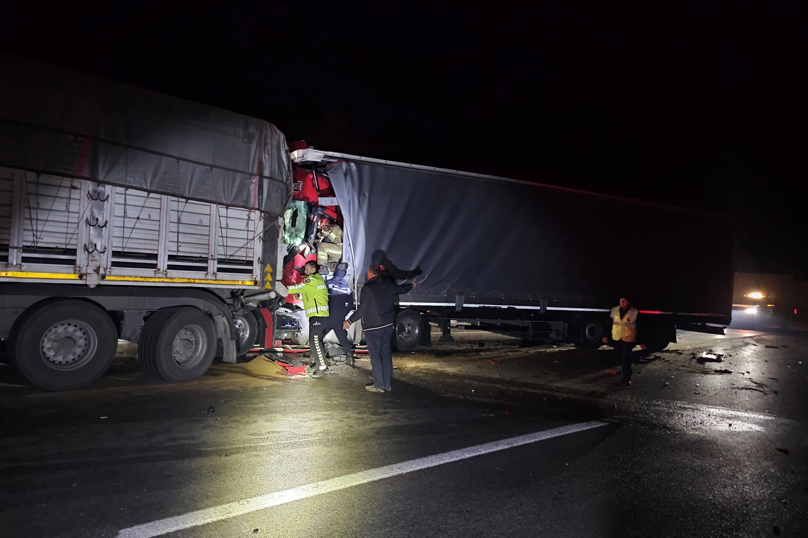 Kaza, saat 02.30 sıralarında Bursa-Bilecik otoyolu Kestel ilçesi mevkiinde meydana geldi. Bursa'dan Bilecik'e seyir halinde olan Şahin İşgören (34) yönetimindeki SPK 233 plakalı tır, sürücüsünün kontrolünden çıkarak önünde seyreden henüz sürücüsü öğrenilen 42 D 8900 plakalı tıra arkadan çarptı.