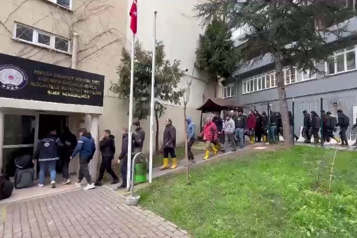 Bursa Emniyet Müdürlüğü Göçmen Kaçakçılığıyla Mücadele ve Hudut Kapıları Şube Müdürlüğümüzce göçmen kaçakçılığı suçunun deşifre edilmesi, suç failleri ve organizatörlerinin yakalanmasına yönelik geniş kapsamlı çalışma başlattı. Titizlikle çalışan ekipler, 47 göçmenin Nilüfer ilçesi Çalı Mahallesi ve Yıldırım ilçesi Duaçınarı Mahallesi'nde çalıştırıldığını tespit etti. Göçmenlere yer temin edip iş ayarlayan H.K., M.K., M.Ö.K. ve S.K. 4 şüpheliyi yakalayan ekipler, iş yerlerine de yaptığı operasyonda 35'i kaçak, 12'si de farklı illere kayıtlı olmak üzere toplam 47 göçmen yakaladı. 35 kaçak göçmen sınır dışı edilirken, göçmenlere yer temin eden ve iş ayarlayan 4 organizatör gözaltına alındı.
