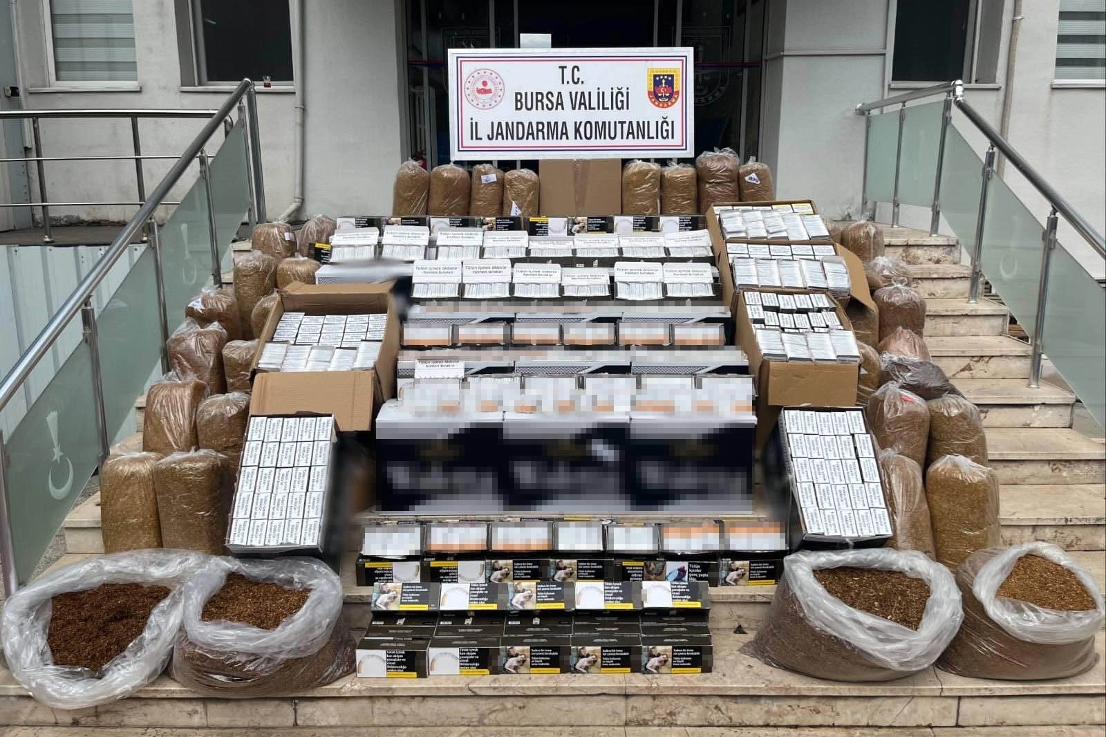 Bursa'nın Gemlik ilçesinde jandarma ekipleri düzenlenen operasyonda 205 bin adet bandrolsüz makaron, 79 bin 800 adet içi tütün doldurulmuş sigara, 200 kilogram kıyılmış tütün ele geçirildi.