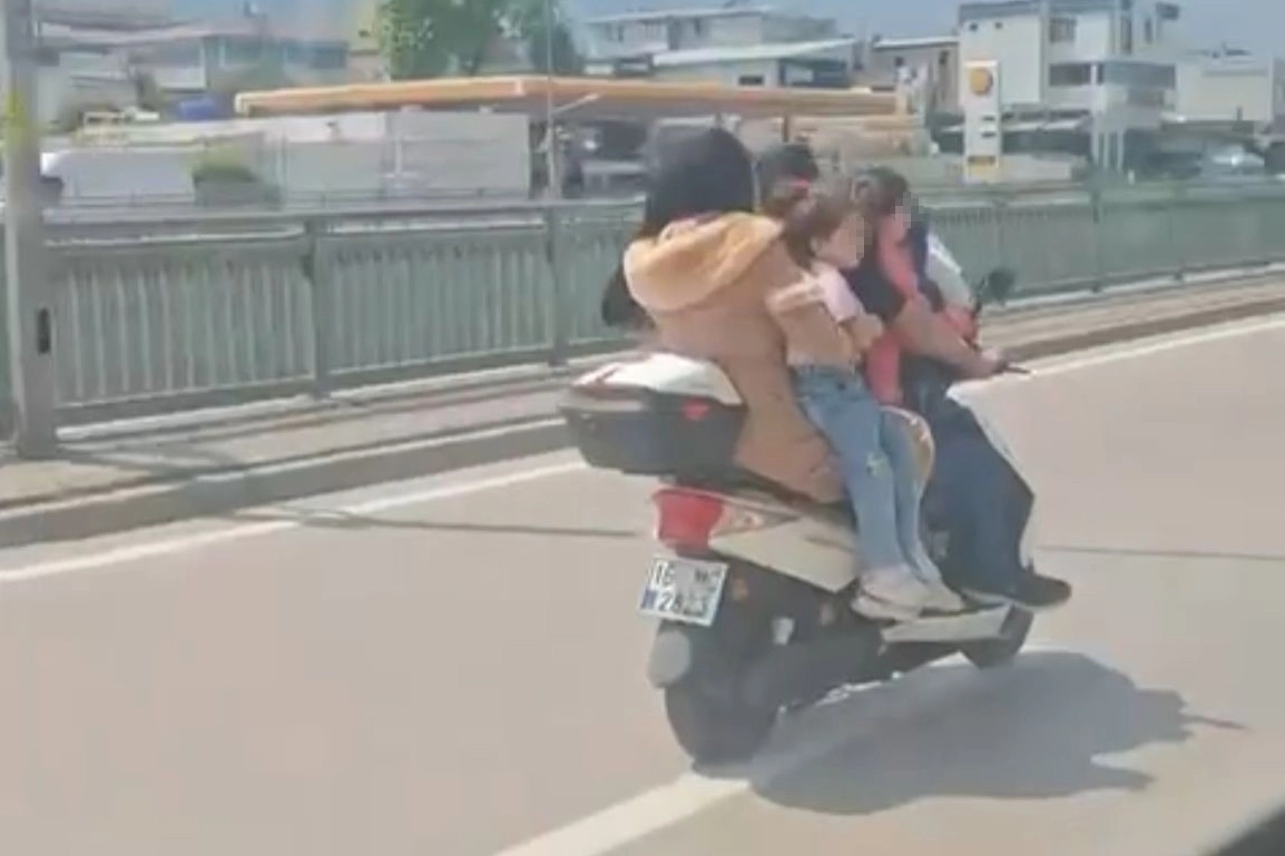 Bursa’nın Yıldırım ilçesi Ankara Yolu Caddesi’nde çocuklarında bulunduğu 5 kişilik aile, tek bir motosikletle trafikte kilometrelerce seyahat etti. Motosikletin sürücüsü kask takmazken, arkasındaki ve önündeki aile üyelerinin de herhangi bir koruyucu ekipman kullanmadığı görüldü.