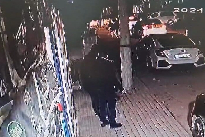 Kavga anı bir iş yerinin güvenlik kamerasına saniye saniye yansırken, olayla ilgili soruşturma başlatıldı.