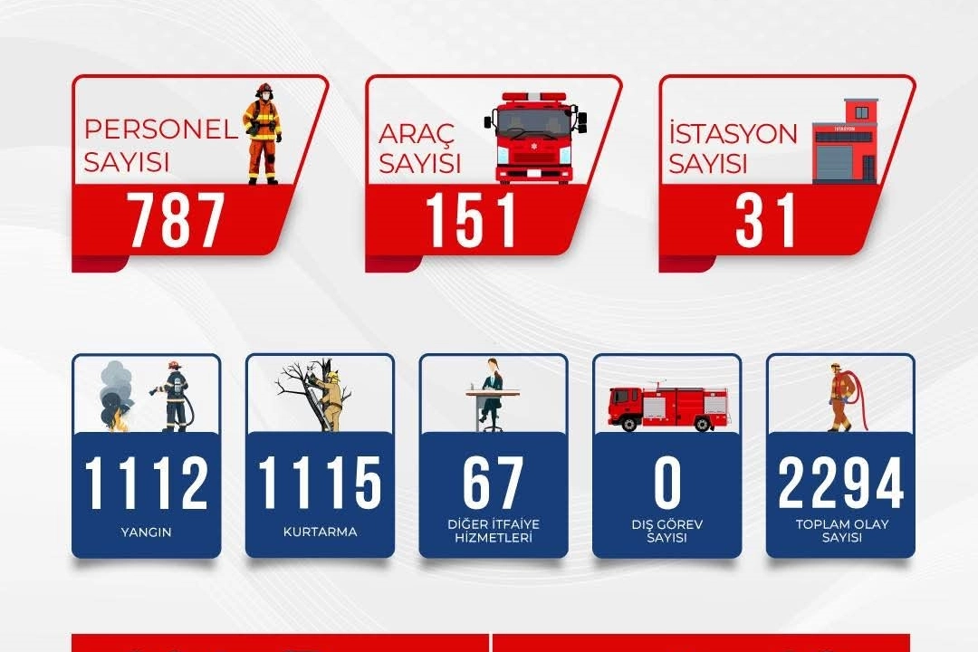 Bursa'da 31 istasyonda 787 personel ve 151 araçla hizmet veren İtfaiye Daire Başkanlığı ekipleri, havaların sıcak gittiği Eylül ayında da yangından yangına koşmaya devam etti. Geride bıraktığımız ayda Bursa Büyükşehir Belediyesi İtfaiye Daire Başkanlığı ekipleri bin 112 yangına, bin 115 arama kurtarma, 67 diğer itfaiye hizmetleri olmak üzere 2 bin 294 olaya müdahale etti. Yapılan açıklamada ayrıca 3 bin 958 kişiye eğitim, olaylarla alakalı 294 itfaiye raporunun hazırlandığı ve 20 denetim gerçekleştirildiği ifade edildi.
