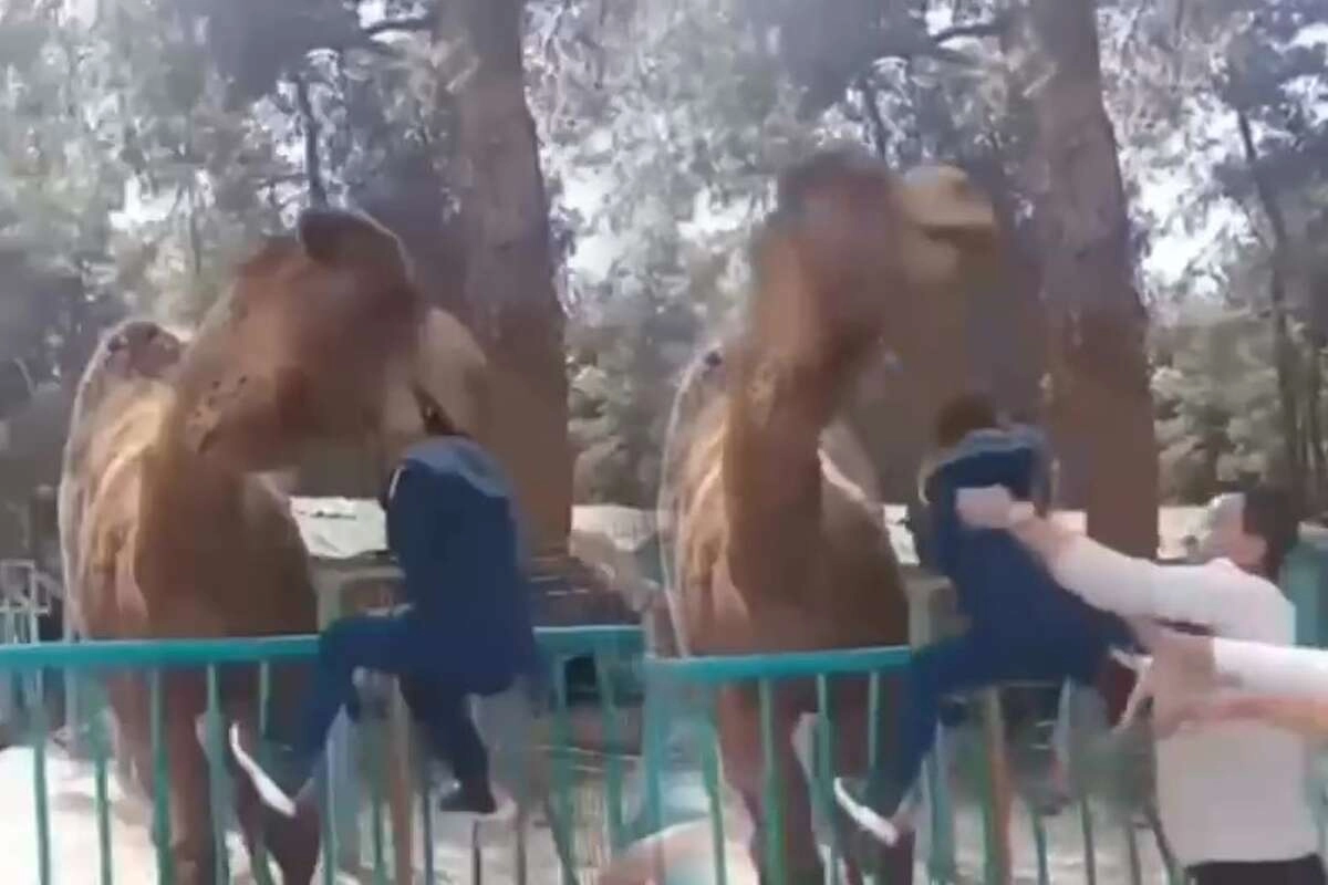 Öte yandan, devenin çocuğu ısırıp havaya kaldırması ve ailenin devenin ağzından çocuğu alması kameralara yansıdı.