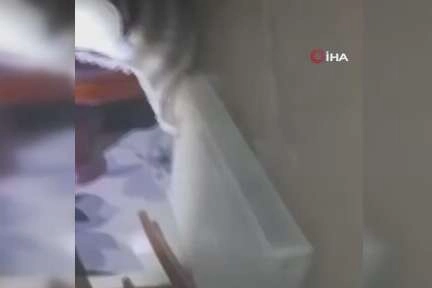 Hatay'da hafif hasarlı bir binadaki kediyi kurtarmaya çalışan arama kurtarma ekiplerinin depreme yakalandığı anlar kameraya yansıdı.