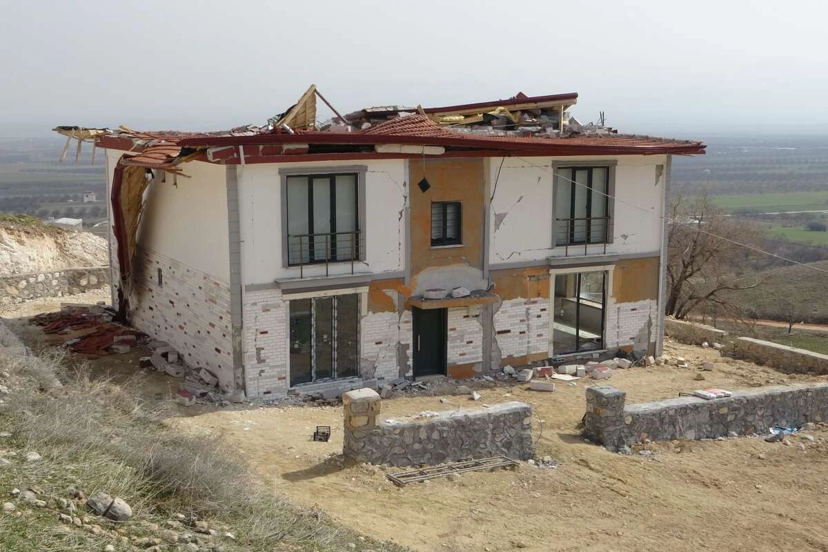 Kahramanmaraş merkezli 7,7 ila 7,6 büyüklüğündeki depremlerin vurduğu Malatya'nın Akçadağ ilçesinde fay hattı üzerine yapıldığı ortaya çıkan iki katlı milyonluk ev kağıt gibi dağıldı. Akçadağ ilçesine bağlı Başpınar Mahallesi Dikendede mevkiinde ailesiyle birlikte yaşayan 39 yaşındaki Soner Menge'ye ait yapımı bu yıl tamamlanan iki katlı milyonluk ev ile taştan yapılan havuz, Kahramanmaraş merkezli depremlerde kağıt gibi dağılarak kullanılmaz hale geldi.