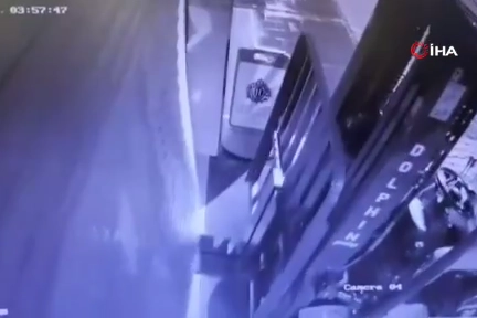 Öte yandan, hırsızın forkliftle kuyumcu dükkanının kepengini kırdığı ve tezgahı devirdikten sonra altınları alarak kaçtığı anlar kameralara yansıdı. Şahsın hırsızlık sırasında bere ve cerrahi maskeyle yüzünü gizlediği anlar da saniye saniye kaydedildi.