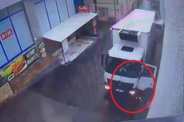 Bursa’nın merkez Yıldırım ilçesi Sıracevizler Mahallesi üzerinde sabah saatlerinde sevkiyat için yanaşan 34 GOS 127 plakalı kamyonun yokuş üzerinde ilerlerken freni boşaldı. Yokuş aşağı kayan araç sürücünün kontrolünden çıkarken, kapıdan atlamak isteyen sürücü dengesini kaybedip yere düştü. Kamyonun altında kalmaktan son anda kurtulan sürücünün o anları kameraya yansırken, BİM’e ait kamyon park halindeki 3 araca çarptıktan sonra bir evin duvarına saplandı. Kaza anı ise güvenlik kameralarına anbean yansıdı.