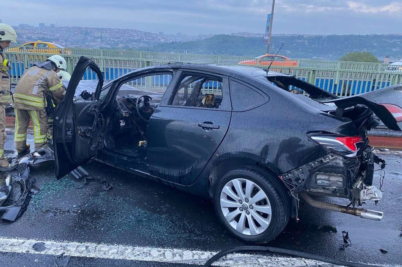 Kaza Haliç Köprüsü Edirne istikametinde sabah saat 05.30 sıralarında meydana geldi. İddiaya göre köprü üzerinde zikzaklar çizerek gelen 34 DES 876 plakalı sürücüsü ismi öğrenilemeyen siyah otomobil, önündeki 34 DGB 479 plakalı İbrahim Bey idaresindeki hafif ticari arabaya arkadan çarptı. Çarpmanın etkisiyle her iki araç da bariyerlere çarparak durabildi. Çarptıktan sonra siyah arabanın motor kısmından başlayarak yanma meydana geldi. Arabadan yükselen yoğun dumanlar bölgeye gelen itfaiye ekiplerinin çabası sonucu kısa sürede söndürüldü. Kazada çarpan arabanın içindeki 2 kişiden şoför yaralandı ve ambulansla hastaneye kaldırıldı. Olay yerine gelen polis ekipleri bölgede güvenlik önlemleri aldı ve kazanın yaşandığı yolu yaklaşık 1 saat boyunca trafiğe kapattı. Kazada herhangi bir can kaybı yaşanmazken polis olayla ilgili soruşturma başlattı.