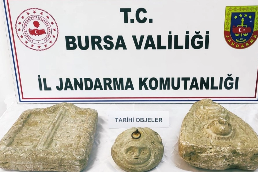 Gürsu İlçe Jandarma Komutanlığı ile İstihbarat Şube Müdürlüğü ekipleri tarafından Kumlukalan Mahallesi’nde şüpheli bir araç durduruldu. Cumhuriyet Savcılığı’ndan alınan arama kararına istinaden araçta yapılan aramada, tarihi eser niteliğinde olduğu değerlendirilen 3 adet obje ele geçirildi. Araçta bulunan N.L. ve M.K. isimli şahıslar gözaltına alındı. Şüpheliler, işlemlerinin ardından sevk edildikleri adli makamlarca adli kontrol şartıyla serbest bırakıldı. Olayla ilgili soruşturma sürüyor.