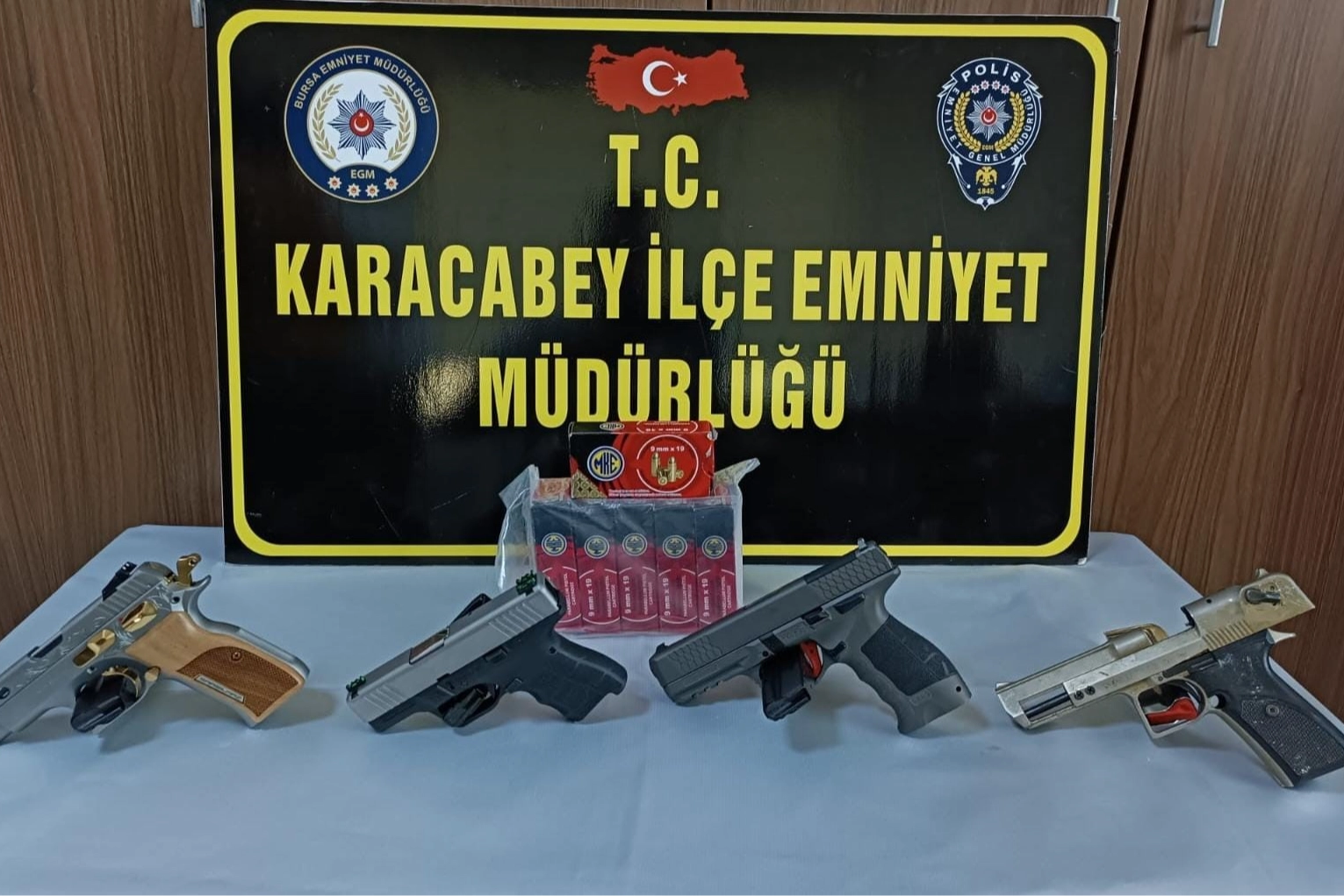 Karacabey İlçe Emniyet Müdürlüğü Asayiş Büro Amirliği ekipleri, ruhsatsız silah bulunduran şahıslara yönelik yapılan çalışmalar kapsamında Karacabey'in Hamidiye Mahallesi'nde bir eve operasyon düzenlendi. N.K. (42) adlı şahsın evine düzenlenen operasyonda arama yapıldı. Yapılan arama sonucunda 4 adet tabanca ve 273 adet fişek ele geçirildi. N.K. adlı şahsın emniyette ifadesi alındıktan sonra serbest bırakılırken, olayla ilgili başlatılan soruşturma ise sürüyor.
