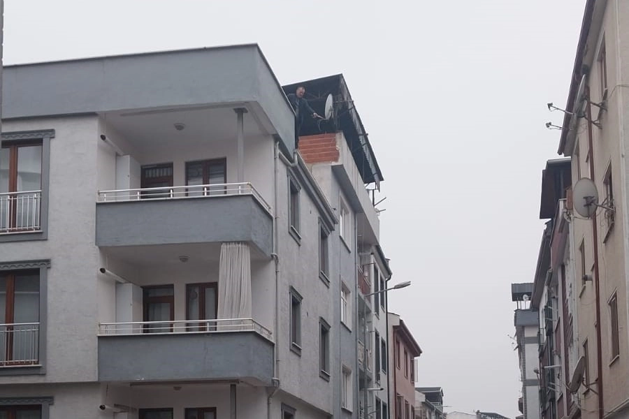 Tartışmada öfkelenen adam, eşini kemerle boğarak öldürdü. Öfkeli adam eşini öldürdükten sonra intihar etmek için 3 katlı apartmanın çatısına çıktı. Olay yerine polis, 112 ve İtfaiye arama kurtarma ekipleri sevk edildi. İtfaiye ekipleri, apartmanın önüne hava yatağı açtılar. İnegöl Emniyet Müdürü Okan Şen ve polis ekipleri adamı ikna etme çalışması başlattılar.