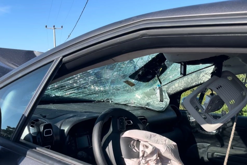 Savrulan araç yol kenarındaki direğe çarparak durabildi.
