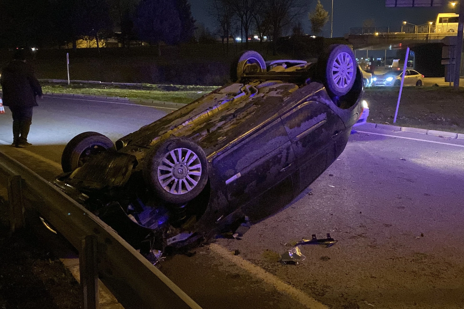 Kaza saat 00.30 sıralarında Bursa-Ankara karayolu üzeri İnegöl girişindeki köprülü kavşak girişinde meydana geldi. Sürücü Safa S.(19) yönetimindeki 16 ADN 415 plakalı otomobil, Alanyurt'a dönüş yaptığı sırada sürücüsünün kontrolünden çıkarak takla attı. Ters dönen araçtaki sürücü kazayı hafif sıyrıklarla atlattı.