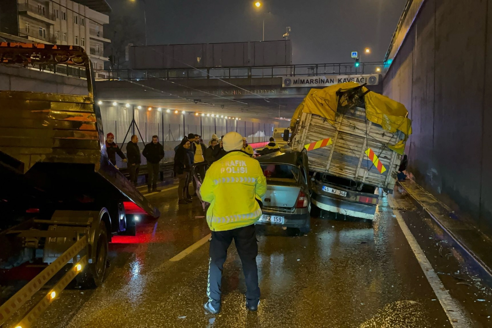 Kaza, Mahmudiye Mahallesi Anafartalar Caddesi üzerinde meydana geldi. Cadde üzerinde seyir halinde olan Mustafa Y. (34) yönetimindeki 16 AIM 957 plakalı motosiklet, yol kenarında duraklayıp caddeye çıkan Alaattin Ö. (61) idaresindeki 16 BJL 78 plakalı minibüsle çarpıştı. Çarpışmanın etkisiyle devrilen motosikletten düşen sürücü ile arkasındaki eşi Songül Y. (33) yaralandı. Yaralılar kaza yerine sevk edilen ambulansla İnegöl Devlet Hastanesine kaldırıldı. Kaza anı bir iş yerinin güvenlik kamerasına saniye saniye yansıdı. Polis kazayla ilgili inceleme başlattı.