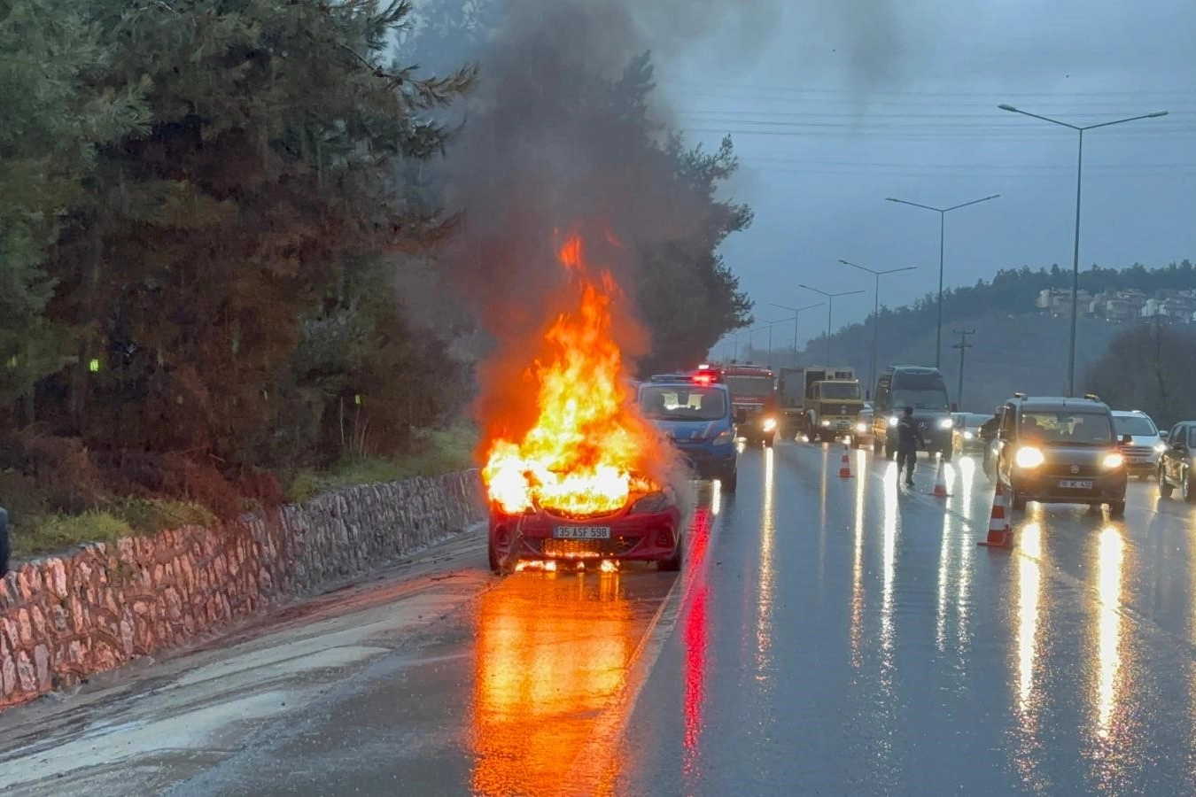 Bursa'da saat 09.00 sıralarında Mudanya Yolu üzerinde, Mudanya istikametinden Bursa yönüne seyir halinde olan bir otomobilde motor arızası meydana geldi. Sürücünün arıza nedeniyle otomobili sağa çekip durdurmasının ardından otomobil kısa sürede alevlere teslim oldu. İhbar üzerine olay yerine Mudanya'dan sevk edilen Büyükşehir Belediyesi itfaiye ekipleri yangına müdahale ederek alevleri kontrol altına aldı. Olayda can kaybı veya yaralanma yaşanmazken, yangın sonucu otomobil kullanılamaz hale geldi.