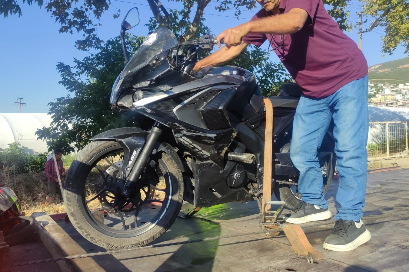 Kazada motosiklet yol kenarına savrulurken motosiklet sürücüsü Oğuzhan Soylu metrelerce savruldu.