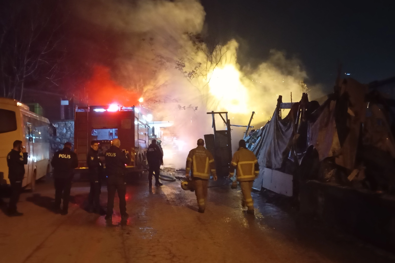 Olay, Bursa'nın Osmangazi ilçesi Gaziakdemir Mahallesi 5. Gümüş Sokak'ta bulunan bir barakada saat 04.00 sıralarında meydana geldi. Henüz belirlenemeyen nedenle çıkan yangını gören vatandaşların ihbarı üzerine olay yerine itfaiye, polis ve sağlık ekipleri sevk edildi. Alevlerin kısa sürede barakayı sardığı olayda içeride bulunan yabancı uyruklu şahıs kendini dışarı attı.