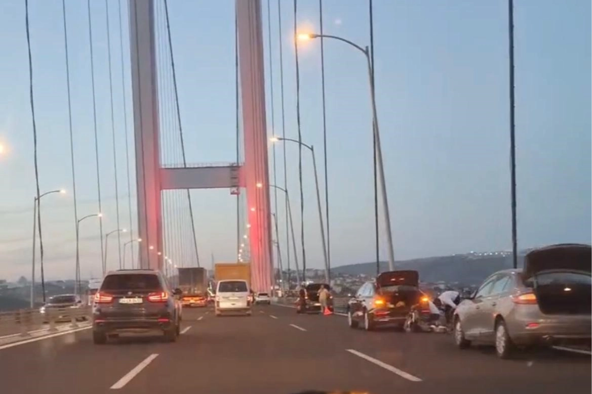 Osmangazi Köprüsü geçişinde Bursa'dan İstanbul istikametinde seyir halinde olan 10'dan fazla aracın lastiği eş zamanlı olarak patladı.
