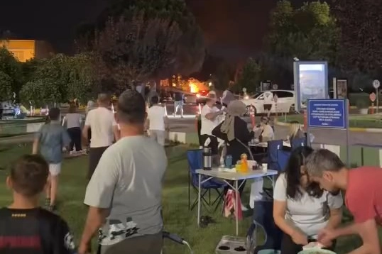 Çimler üzerinde serinlemek isterken, araçlarını park ettikleri alandan dumanlar yükselmeye başladı. Biranda otomobillerin arasından yükselen alevleri görenler koşuşturmaya başladı. Kısa süre yaşanan paniğin ardından alevler, vatandaşlar ve itfaiye ekipleri tarafından söndürüldü.