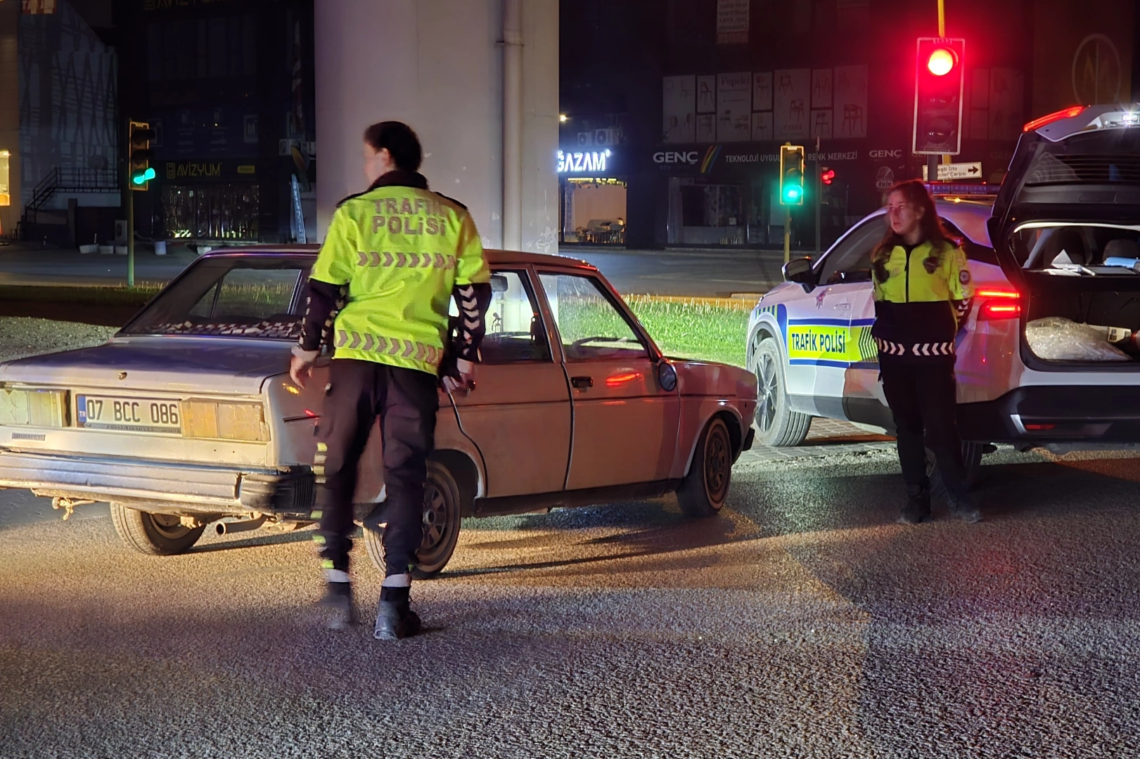Yaklaşık 10 kilometre süren kovalamaca sonucunda araç önü kesilerek durduruldu. Sürücü Mustafa G.'nin (28) yapılan alkolmetre testinde 2.23 promil alkollü olduğu tespit edildi. Aday sürücüye, alkollü araç kullanmaktan 200 bin TL, "dur" ihtarına uymamaktan 200 bin TL olmak üzere toplam 400 bin TL cezai işlem uygulandı. Sürücünün ehliyeti daimi olarak iptal edilirken, aracı ise 60 gün süreyle trafikten men edildi.
