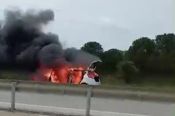 Bursa'da Karacabey-Bandırma istikameti üzerinde seyir halinde olan bir otomobil henüz bilinmeyen bir nedenle alev aldı. Kısa sürede büyüyen yangın, çevredeki sürücülerde paniğe yol açtı.
