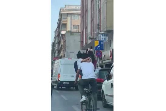 Olay dün saat 17.00 sırlarında Sultangazi Cebeci Mahallesi Eski Edirne Asfaltı üzerinde yaşandı. Edinilen bilgiye göre bölgede bulunan ve yabancı uyruklu öğrencilerin eğitim gördüğü okuldan çıkan çocuklarını okul çıkışında almaya giden duyarsız baba kucağına aldığı iki çocuğu ile birlikte bisiklete binerek akan trafikte yolculuk yapmaya başladı. Hem kendinin hem de çocuklarının canını tehlikeye atan duyarsız baba araçların arasından ilerlediği esnada ise zaman zaman düşme tehlikesi yaşayınca trafikte seyir halinde olan diğer araçlara tutunarak ilerlemeye çalıştı. Bir süre devam eden tehlikeli yolculuk babanın daha sonra araçların arasından geçerek gözden kaybolması ile sona erdi.