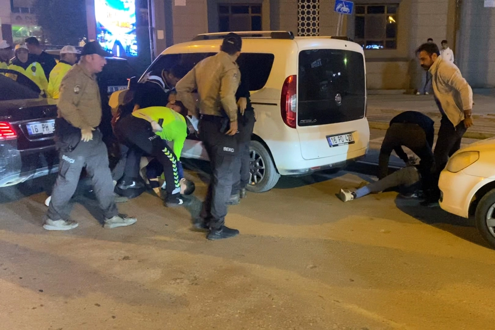Osmaniye Mahallesi, Ahmet Akyollu Caddesi üzerinde uygulama yapan ekipler 16 PH 934 plakalı otomobilin sürücüsüne "dur" ihtarında bulundu. "Dur" ihtarına uymayan sürücü hızla kaçmaya çalışırken, ekipler aracı durdurmak için tutundu. Araca tutunan polisi hiçe sayan maganda, polisi sürükledi. Diğer polislerin havaya ateş açması sonucu otomobil, başka bir araca çarparak durdu. Yusuf K.'nin (20) alkol testinde 2.0 promil alkollü olduğu tespit edildi. Sürücüye alkollü araç kullanmaktan 6 bin 439 TL cezai işlem uygulanırken, ehliyetine 6 ay süreyle el konuldu. Uygulama esnasında ceza yağdı