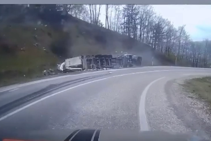 Kaza, İnegöl-Domaniç karayolu Tahtaköprü Mahallesi mevkiinde meydana geldi. Domaniç istikametinden İnegöl'e seyir halinde olan Murat B. (39) yönetimindeki 16 BUT 870 plakalı su yüklü tır, yokuş aşağı inerken sürücüsünün kontrolünden çıktı. Yoldan çıkan tır yamaca devrilirken, ihbar üzerine olay yerine 112, jandarma ve itfaiye ekipleri sevk edildi. Kazada yaralanan sürücü, tırın camı kırılarak ekiplerce kurtarıldı. Yaralı, olay yerine sevk edilen ambulansla İnegöl Devlet Hastanesine kaldırıldı. Kaza anı ise tırın arkasında seyir halinde olan aracın kamerasına anbean yansıdı. Jandarma ekipleri kazayla ilgili inceleme başlattı