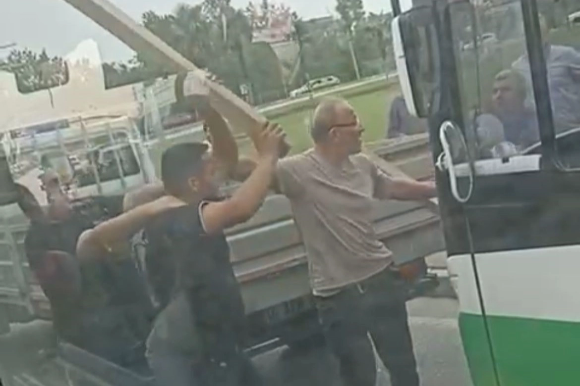 Olay, merkez Osmangazi ilçesi Acemler mevkiinde meydana geldi. İddiaya göre, yol verme meselesi nedeniyle araçtan inen bir sürücü kendisine yol vermeyen kamyonet şoförü ile tartışmaya başladı. İkili arasında artan tansiyon kavgaya dönüşünce iki sürücü birbirlerine kalasla vurmaya başladı. O anlar kameraya saniye saniye yansırken, kavgayı çevredekiler güçlükle ayırdı.