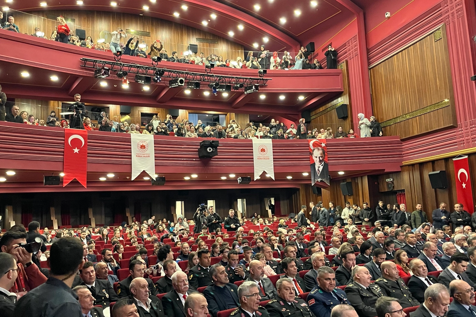 Bursa Valiliği tarafından 23 Nisan Ulusal Egemenlik ve Çocuk Bayramı, büyük bir coşkuyla okullardan gelen öğrencilerin katılımıyla Tayyare Kültür Merkezi’nde kutlandı. Salonu dolduran öğrencilerin hep bir ağızdan söylediği İstiklal Marşı'nın ardından bir öğrencinin okuduğu şiir büyük beğeni topladı. Bursa İl Milli Eğitim Müdürü Gürhan Çokgezer ise yaptığı konuşmada, şu cümlelere yer verdi; "Sahip olduğunuz bu kıymetli mirası daha ileriye taşıyabilmeniz, bilgiyle donanmanızın yanı sıra milli ve manevi değerlerinize bağlı, sorumluluk sahibi bireyler olarak yetişmenizle mümkündür. Öğretmenler, sadece bilgi aktaran değil, aynı zamanda değer inşa eden, istikamet çizen ve geleceği şekillendiren rehberlerdir. Eğitim sisteminin temel vizyonlarından biri olan Türkiye Yüzyılı Maarif Modeli, sadece akademik başarıyı önceliklendirmemektedir. Öğrencilerimizi değer, erdem ve eylem temelli bir anlayışla yetiştirmeyi esas almaktadır. Bu büyük hedefin hayata geçirilmesinde en büyük sorumluluk siz kıymetli öğretmenlerimize aittir. Kıymetli velilerimiz, çocuklarımızın akademik gelişmelerinin yanı sıra ahlaki ve sosyal yönden sağlıklı bireyler olarak yetişmeleri siz değerli ailelerimizin göstereceği ilgi, rehberlik ve hassasiyetle doğrudan ilişkilidir."