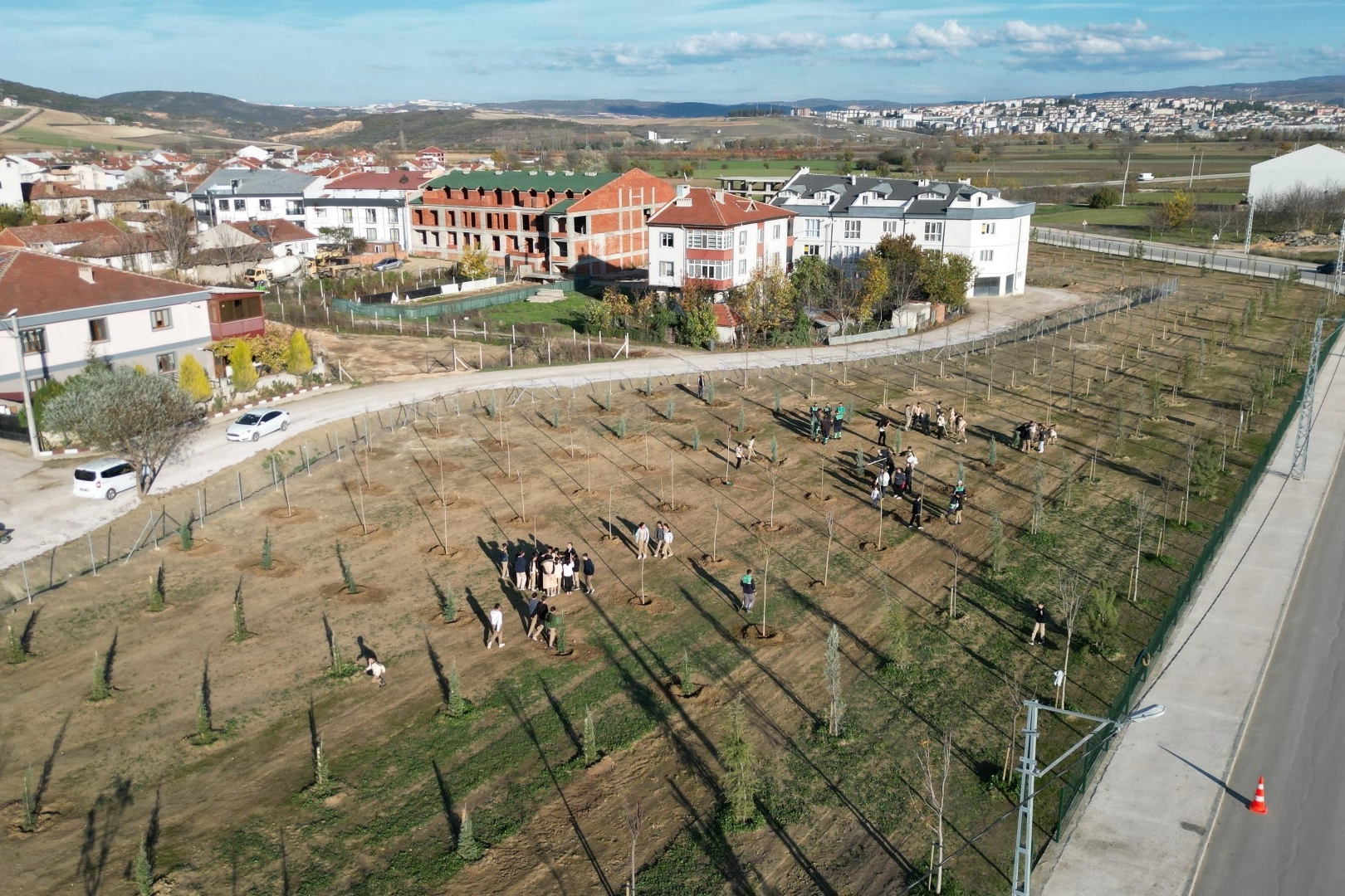 2 etaplı koruluk uygulamasının 1. etabı tamamlanırken, Belediye Başkanı Alper Taban da beraberindeki heyetle birlikte hem alanda inceleme yaptı hem de fidan dikimi gerçekleştirdi.