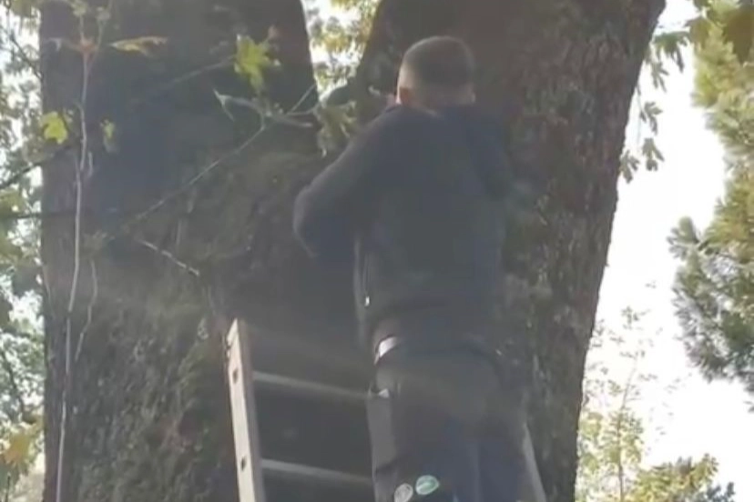 Merkez, Osmangazi ilçesinde bulunan Kültürpark’taki bir ağaca çıkan kedi mahsur kaldı. Kedinin ağaçtan inemediğini gören vatandaşlar durumu Bursa Büyükşehir Belediyesi ekiplerine bildirdi. Bölgeye gelen ekipler, merdivenle ağaca çıkarak bulunduğu yerden kurtardı. Ağaçtan indirilen kedi bir süre kendini sevdikten sonra doğaya tekrar bırakıldı. O anlar kameraya yansıdı.