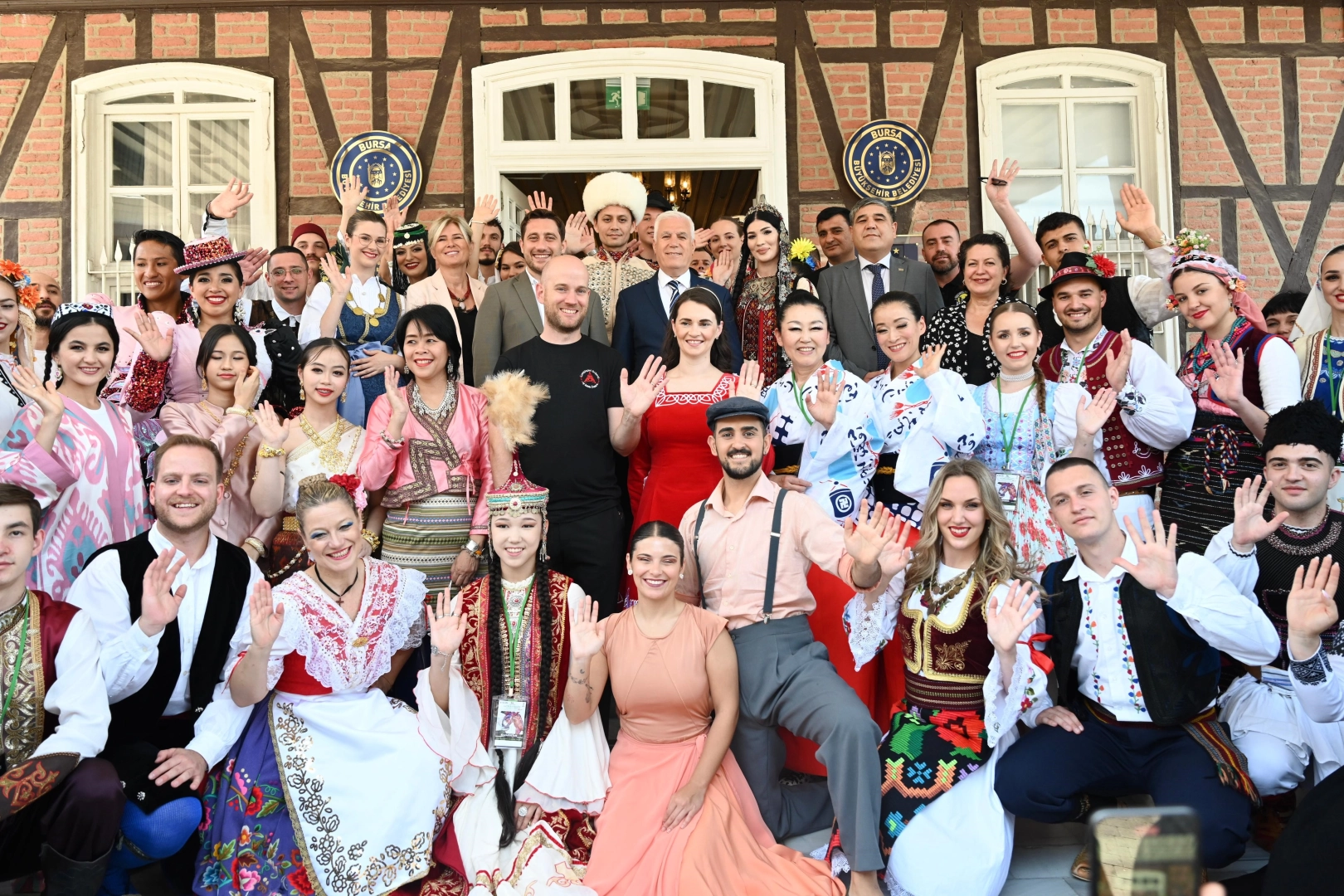Bursa Büyükşehir Belediyesi adına Bursa Kültür Sanat ve Turizm Vakfı (BKSTV) tarafından düzenlenen 36. Uluslararası Altın Karagöz Halk Dansları Yarışması'na katılan 23 farklı ülke ve 26 yerel halk dansları topluluğunun temsilciler ile jüri üyeleri, Bursa Büyükşehir Belediye Başkanı Mustafa Bozbey'i ziyaret etti. BKSTV Yönetim Kurulu Başkanı Metin Atış'ın da yer aldığı ziyarette Başkan Bozbey, misafir ekiplerle samimi bir ortamda sohbet etti. Festivalle ülke kültürlerini buluşturarak dünyaya barış mesajları vermenin amaçlandığını söyleyen Başkan Mustafa Bozbey, birçok medeniyete ev sahipliği yapan Bursa'nın tarihinden aldığı güçlü mirası geleceğe taşıdığını belirtti. Bozbey, “Altın Karagöz de 36 yıldır dünya barışına katkı sunuyor. Bir hafta boyunca Bursa'mıza dansın ve müziğin büyüleyici harmonisini sunacak olan tüm sanatçılara teşekkür ediyorum. Bu yarışma, kültürler arası köprüler kurmamıza, birbirimizi anlamamıza ve değerlerimizi paylaşmamıza imkan sağlıyor. Tüm Bursalıları, bu renkli ve anlamlı etkinliklere katılmaya, dansın coşkusunu birlikte yaşamaya davet ediyorum” dedi.