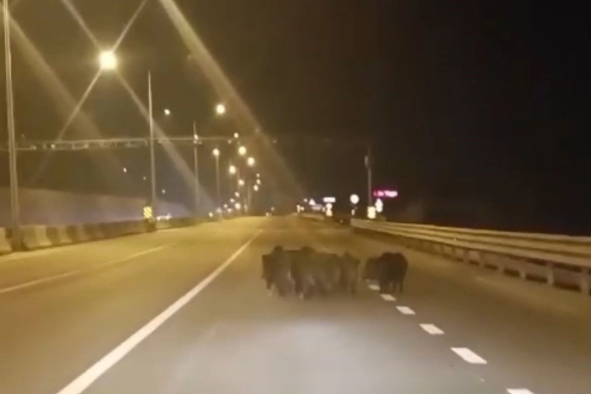 Mudanya ilçesi Mudanya Yolu üzerinde hızla seyreden otomobiller, yol üzerindeki karaltıyı görünce yavaşlamak zorunda kaldı. Cadde üzerine çıkan çok sayıda irilik ufaklı domuz, bir süre sağ şeridi işgal etti. Kaza yapmaktan son anda kurtulan otomobildekiler, cep telefonu kameralarıyla o anları saniye saniye kaydetti. Cadde üzerindeki domuz sürüsü, bir süre sonra ortadan kayboldu.