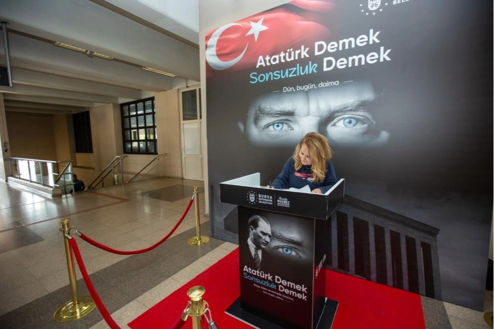 Bursa Büyükşehir Belediyesi, Cumhuriyet’in kurucusu, Ulu Önder Gazi Mustafa Kemal Atatürk’ün ebediyete uğurlanışının 87. yıl dönümü dolayısıyla kent genelinde anlamlı bir etkinliğe daha imza attı. Bursalıların Atatürk’e olan sevgi, saygı ve özlemlerini ifade edebilmeleri amacıyla kentin 10 ayrı noktasına ‘anı defteri stantları’ kuruldu. Şehreküstü, Acemler ve Uludağ Üniversitesi BursaRay istasyonlarının yanı sıra Mudanya BUDO İskelesi, Şehirlerarası Otobüs Terminali, PodyumPark, Kent Meydanı, Çarşıbaşı B Kafe, Bursa Büyükşehir Belediyesi Tarihi Belediye Binası önü ve Yıldırım Barış Manço Kültür Merkezi’nde kurulan anı defteri noktalarıyla vatandaşlar, duygu ve düşüncelerini yazarak kent belleğine kalıcı birer hatıra bırakıyor. Bursalılar, 9 Kasım akşamına kadar hizmette olacak anı defteri stantlarıyla Ata’ya duydukları minneti ve sevgiyi birlik duygusuyla cümlelere dökebilecek.