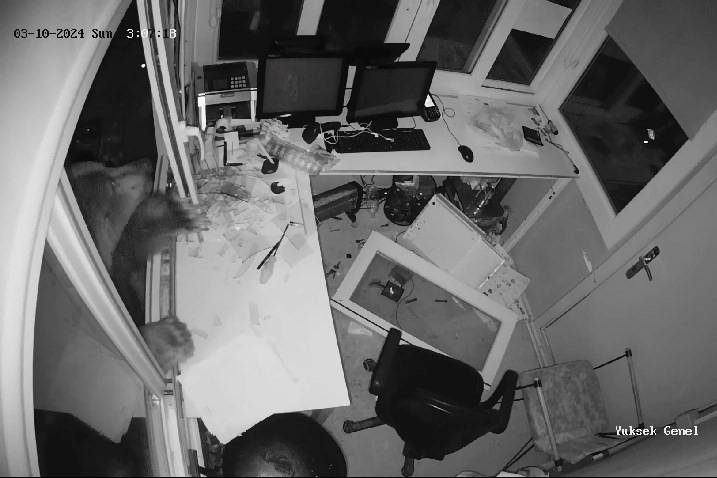 Uludağ’ın ormanlarında yiyecek bulamayan ayılar, insanların yaşadığı ortamlara inerek yiyecek aramaya devam ediyor. Güvenlik kameralarına yansıyan son görüntüler, Sarıalan Bölgesinde kayda alındı. 2 yavrusu ile birlikte yiyecek arayan ayı, önüne gelen ne varsa yıktı geçti. Yavrularını doyurmak için yiyecek bulmak zorunda olan yetişkin ayı, çöp konteynerlerinde bir şey bulamayınca, Macera Park'ın güvenlik kulübesine girmeye çalıştı. Gişenin camını zorlayarak indiren ayı, içeri giremeyince diğer camı da zorlayarak kırdı. İçeri girmeye başaran ayı, yavruları ve kendi için bir şey bulamadan çıktığı yerden indi. Boyları yetmeyen 2 yavru ayı da içeri bakmayı ihmal etmedi.