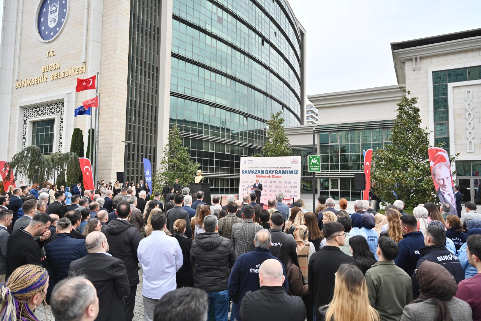 Bursa Büyükşehir Belediye Başkanı Mustafa Bozbey, Ramazan Bayramı öncesinde Büyükşehir Belediyesi çalışanlarıyla bayramlaşma töreninde buluştu. Büyükşehir Belediye Binası tören alanındaki programda konuşan Başkan Mustafa Bozbey, herkesin sağlıklı, mutlu ve güzel bir bayram geçirmesini diledi. Bugüne kadar yapılan hizmetlere katkı sunan tüm çalışanlara teşekkür eden Başkan Bozbey, "Biz bir aileyiz. Yönetiminden idari mekanizmasına kadar bütün arkadaşlarımız bu kurumun çalışanı ve temsilcisidir. Birbirimizle proje paylaşarak, ortak akılla o projenin doğruluğunu sorgulayarak ve uygulayarak bu kente hizmet edeceğiz. Her bir çalışma arkadaşım benim için kıymetlidir. Nice bayramlarda hep beraber güzellikler içerisinde buluşmayı diliyorum. Ramazan Bayramımız mübarek olsun" dedi.