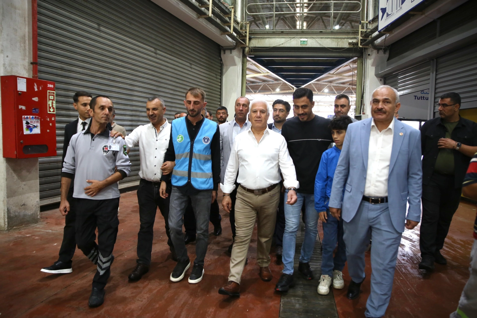 Hal ve balıkçı esnafının sorunlarını dinleyen ve yerinde çözümler üreten Başkan Mustafa Bozbey, denizlerden bol balık çıkmasını, esnafın çok kazanmasını ve vatandaşların da bol balık tüketebilmesini arzuladıklarını dile getirdi.