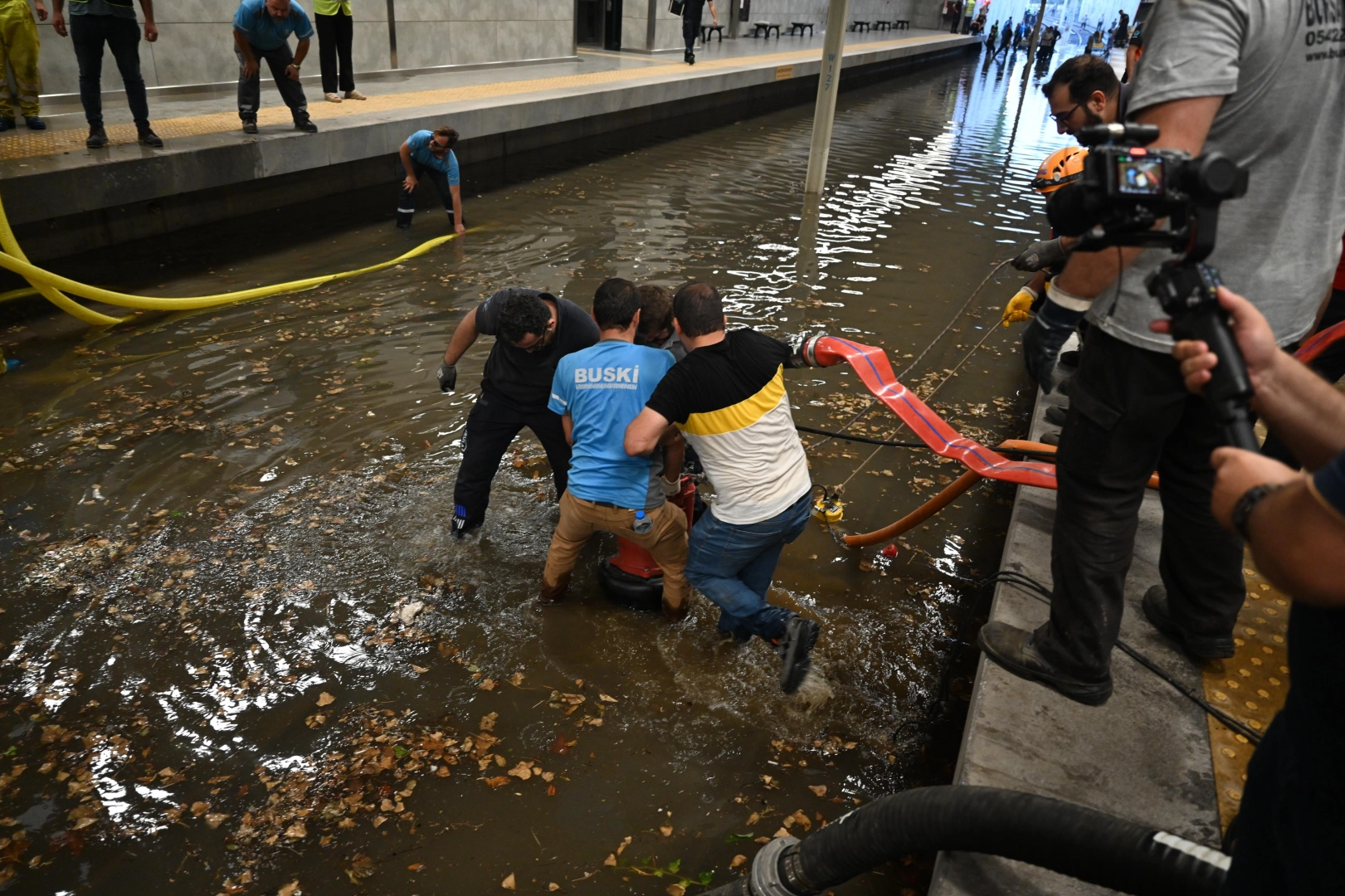 Bursa Büyükşehir Belediye Başkanı Mustafa Bozbey, yağışlar sebebiyle yaşanan olumsuzluklar üzerine şehir dışındaki programlarını iptal ederek hızlıca kente döndü. Odunluk İstasyonu'ndaki su tahliye çalışmalarını yerinde inceleyen Başkan Mustafa Bozbey, Büyükşehir Belediyesi Genel Sekreteri Doç. Dr. Ergül Halisçelik ile birlikte Burulaş Genel Müdürü Fahrettin Beşli ve BUSKİ Genel Müdürü Güngör Gülenç'ten son durum hakkında bilgi aldı. Burulaş ve BUSKİ personelinin yanı sıra AFAD ve diğer yardım kuruluşlarının ekipleri de su tahliye çalışmalarında aktif rol alırken, Başkan Mustafa Bozbey yoğun gayret gösteren herkese teşekkür etti.