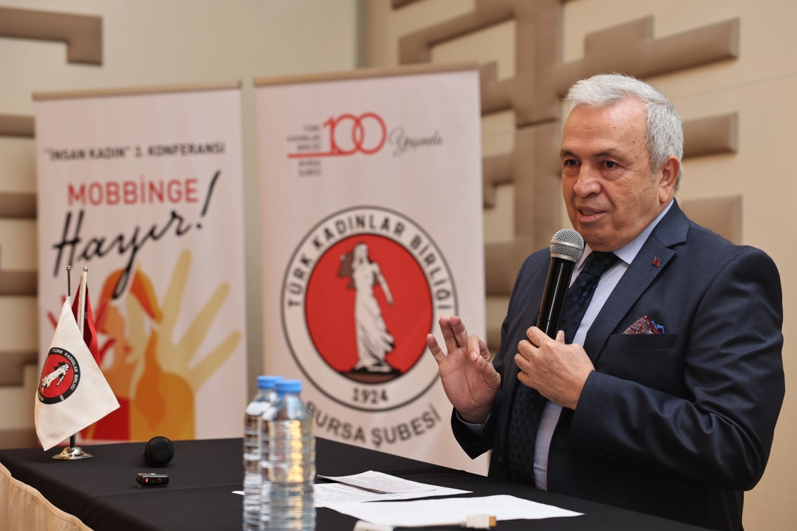 Nilüfer Belediyesi, Türk Kadınlar Birliği (TKB), Nilüfer Kent Konseyi ve Bursa Barosu iş birliğinde düzenlenen "İnsan Kadın" başlıklı konferansın 3’üncüsü Nilüfer Nikahevi Safir Salon’da yapıldı. Türk kadınına seçme ve seçilme hakkı verilmesinin 90. yıl dönümü nedeniyle düzenlenen programa Nilüfer Belediye Başkanı Şadi Özdemir ve eşi Nuray Özdemir’in yanı sıra Bursa Büyükşehir Belediye Başkanvekili Mehmet Aydın Saldız, Bursa Büyükşehir Belediyesi Genel Sekreter Yardımcısı Mehmet Emin Direkçi, Bursa Barosu Başkanı Avukat Metin Öztosun, Nilüfer Kent Konseyi Başkanı Doç. Dr. Mustafa Berkay Aydın, TKB Bursa Şubesi Başkanı Tijen Sözleri ve çok sayıda sivil toplum kuruluşu temsilcisi ile kadınlar katıldı. Programın açılışında konuşan TKB Bursa Şubesi Başkanı Tijen Sözeri, Cumhuriyetin bir kadın devrimi olduğunu belirterek, aynı zamanda eşit yaşamanın da bu yönetim şeklinde yer aldığını hatırlattı. Cumhuriyetin en büyük kazanımlarından birisinin kadınlara seçme ve seçilme hakkının verilmesi olduğunu vurgulayan Sözeri, Türkiye Cumhuriyeti Kurucusu Mustafa Kemal Atatürk’ü minnetle andı.