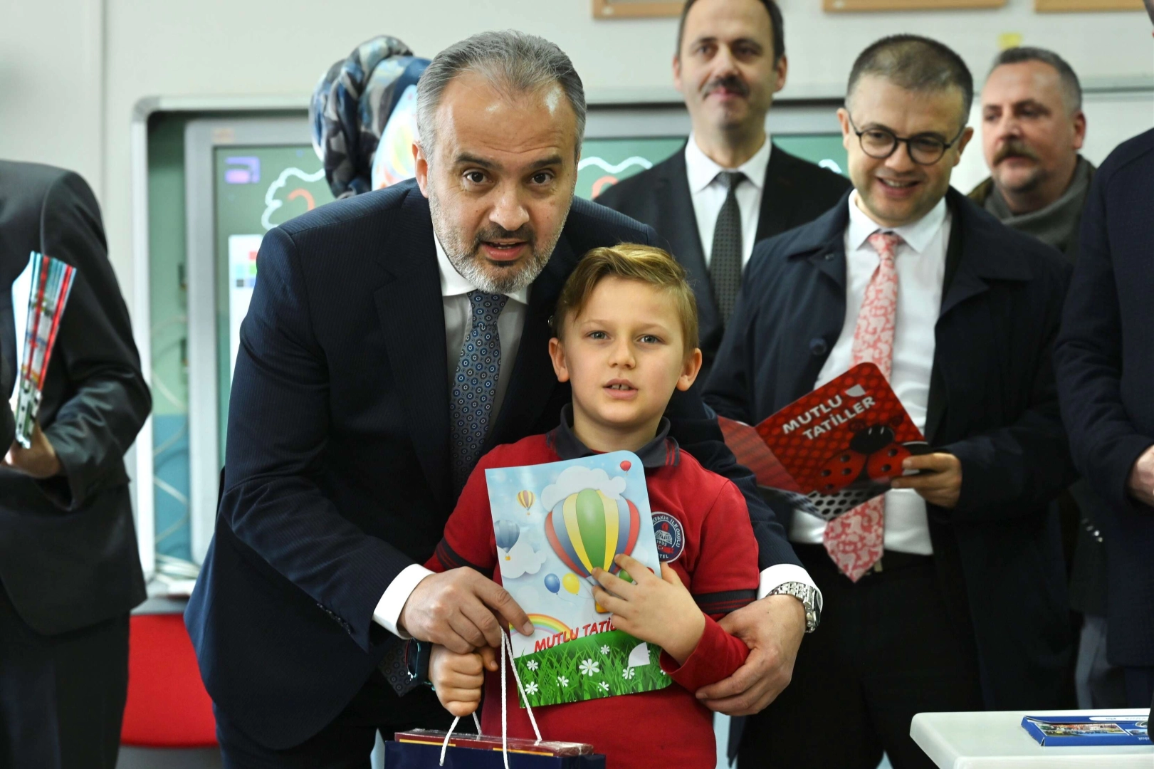 Bursa’da yaklaşık 660 bin öğrenci ve 42 bin öğretmen karnelerin dağıtılmasıyla 15 günlük tatile çıkmış oldu. İlk dönemin son gününde Kestel İlçesi Barakfakih Köyü Okulu’nda düzenlenen törende öğrencilerin karne heyecanına Bursa Büyükşehir Belediye Başkanı Alinur Aktaş, Kestel Kaymakamı Recep Öztürk, İl Milli Eğitim Müdürü Serkan Gür ve Kestel Belediye Başkanı Önder Tanır da ortak oldu. Sohbet ettiği öğrencilere daha sonra karnelerini veren Büyükşehir Belediye Başkanı Alinur Aktaş, velilere karnedeki notlar ne olursa olsun çocuklarının yanlarında olmaları tavsiyesinde bulundu. Çocukların karne sevincine ortak olmak istediklerini ifade eden Başkan Aktaş, “Çocuklarımıza karneleri ile beraber güzel vakit geçirecekleri hediyeler sunduk. Yavrularımız bizim geleceğimiz. Ulaşımdan çevreye, spordan eğitime kadar yaptığımız tüm yatırımlar geleceğimiz olan evlatlarımız için. Daha iyi bir gelecek için canla başla çalışmaya devam edeceğiz. Ben bu vesileyle tekrar tüm çocuklarımıza iyi tatiller diliyorum, dinlensinler. Bu tatilden sonra çok daha iyi çalışacaklarına inanıyorum” dedi. İl Milli Eğitim Müdürü Serkan Gür de eğitim-öğretim yılında ilk dönemin sonuna geldiklerini hatırlatarak, “Biz bugün hem okul öncesi, hem ilkokul, hem de özel eğitim öğrencilerimizle birlikte olmak istedik. Çocuklarımızın karne heyecanını paylaşmak istedik. Öğrencilerimiz eylül ayından beri çalışıyorlar. Dinlenmek onların en büyük hakkı. Ben bütün çocuklarımızın ikinci dönemde de aynı heyecanla çalışacaklarına inanıyorum. Bütün öğrencilerimizin gözlerinden öpüyorum, iyi tatiller” diye konuştu.