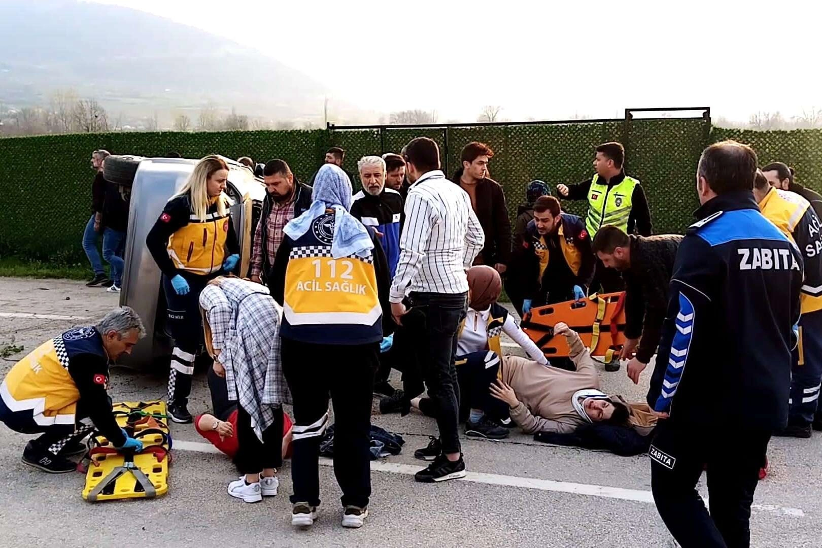 Kaza, İnegöl ilçesi Ahmet Türkel çevreyolu üzerinde meydana geldi. Seyir halindeki Gani E. (46) yönetimindeki 46 LF 201 plakalı otomobil, sürücüsünün kontrolünden çıkarak önce refüje ardından karşı yöne geçerek takla atıp devrildi. Kaza sonucu sürücü ile araçta bulunan Doğan O. (25), Ebru A.(28), Dilek U.(25) ile Selin O. (27) yaralandı. Kaza yerine 112 ve polis ekipleri sevk edildi. 5 yaralı ambulanslarla İnegöl Devlet Hastanesine kaldırıldı. Yaralıların sağlık durumlarının iyi olduğu öğrenildi.