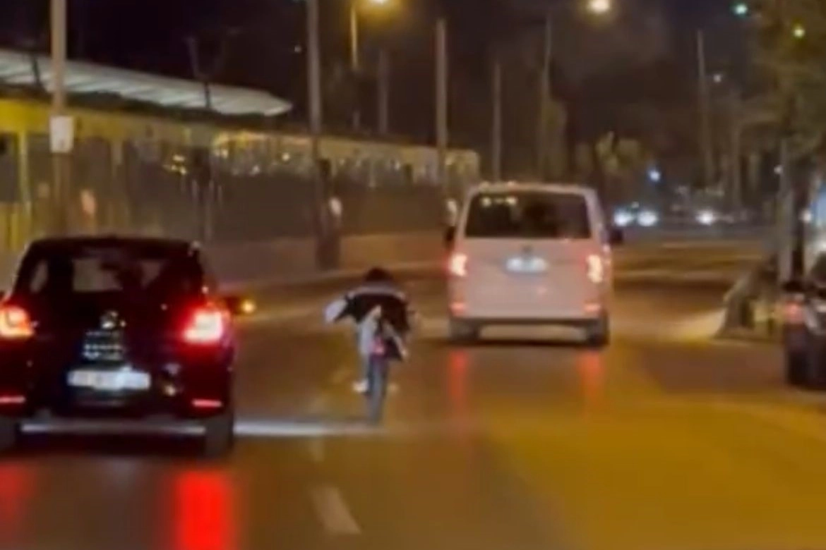 Yüksek hızla trafikte ilerleyen şahsın tehlikeli yolculuğu, diğer sürücüler tarafından cep telefonuyla saniye saniye kaydedildi. Trafik güvenliğini hiçe sayan sürücüler, sosyal medyada da büyük tepki topladı