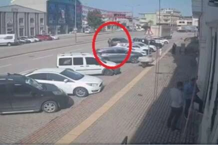 Bursa’da bir otomobil sürücüsü aracıyla geri manevra yaparak süratle ilerleyen o esnada karşıya geçen vatandaşı fark etmedi. Hızla çarptığı kişi yere savrulurken, sürücünün frenleyip durması daha büyük bir facianın önüne geçti. Yaralanan sürücü kendisi için çağıran ambulans ile en yakın hastaneye kaldırılırken, olayla ilgili soruşturma başlatıldı. Kaza anı ise bir işyeri kamerasına saniye saniye yansıdı.