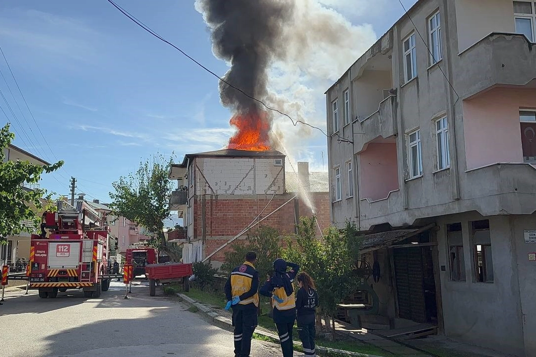 Edinilen bilgiye göre, 3 katlı binanın çatısından dumanların yükseldiğini gören vatandaşlar, durumu 112 Acil Servis ekiplerine bildirdi.